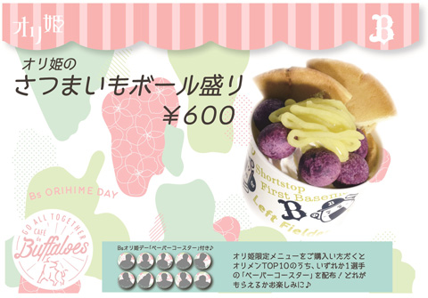 6月25日(金)~27日(日)「Bsオリ姫デー2021 supported by FWD富士生命」にて、オリ姫のための限定メニューをご用意しました!可愛く、おしゃれに!野球観戦を楽しみましょう!
