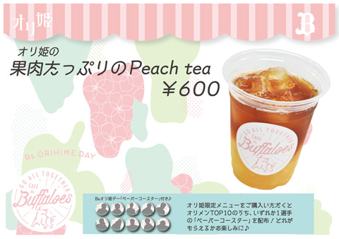 オリ姫メニューをご購入いただくと、投票によってオリ姫に選ばれた推しメン選手・オリメンTOP10のうち、いずれか1選手の「ペーパーコースター」を配布いたします。