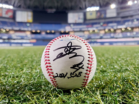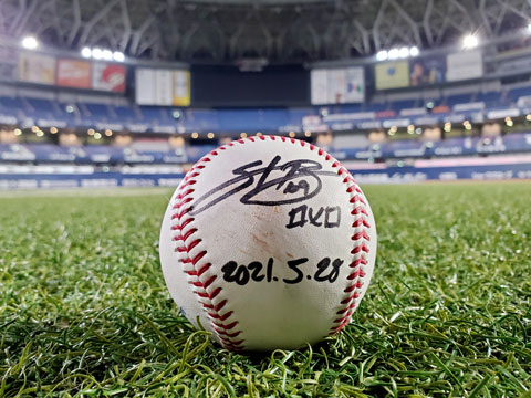 ※「キャリア初ホームラン」等の記念球の場合は、サインボールのプレゼントとなります。