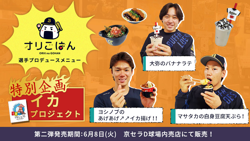 毎年大好評のオリごはん!6月8日(火)から発売の「選手プロデュースメニュー」が決定いたしました。
