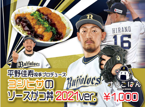 | 商品紹介 | 『ヨシヒサのソースかつ丼2021ver.』 平野佳投手の復帰を祝し、おなじみのソースかつ丼も復活です!2021ver.としてさらにパワーアップ。ソースがかかったジューシーなカツを食べて勝利を引き寄せましょう! |