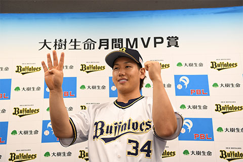 5月度大樹生命月間MVPに吉田正尚選手が選ばれ、受賞記者会見が行われました。