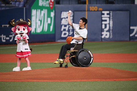 オリックス・バファローズでは6月29日、大阪の街を明るくすることに貢献した地元のヒーローにご登板いただく「なにわのHERO始球式」を京セラドーム大阪にて実施いたしました。第2回となる今回は、東京パラリンピックアーチェリー日本代表内定の上山友裕さん(33)が登板され、2カ月後に迫った大舞台での活躍を誓われました。