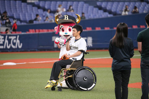 始球式後、上山さんは「この感動は、リオデジャネイロの開会式を超えました」と満面の笑み。チームの活躍が励みになり、先日の試合では今季の自己ベストを更新したエピソードを披露し「順調に仕上がっている。バファローズの選手たちが毎試合ファンの皆さんに感動を与えているように、僕も応援して良かったと思ってもらえる姿を見せたい」と目標の金メダルに向けて力強く話されていました。