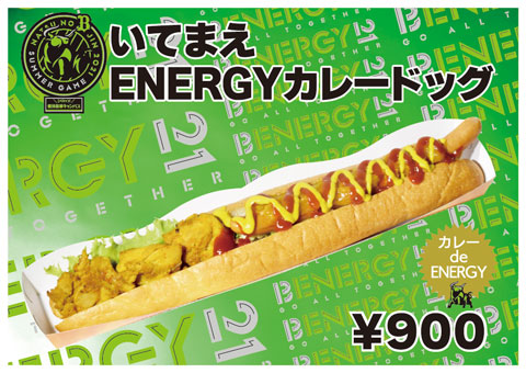 | 商品紹介 | 「いてまえENERGYカレードッグ」 いてまえドッグカレーバージョン! カレーソースをアクセントにスパイシーなタンドリーチキンをトッピングした夏の陣限定のいてまえドッグです♪ |