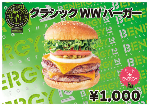 | 商品紹介 | 「クラシックWWバーガー」 肉汁あふれるクォーターパウンドパティ(約113g)のビーフパティが2枚、厚切りのレッドチェダーチーズが2枚、ピクルス、オニオン、トマト、グリーンカールがサンドされたボリューム満点のバーガーです! |