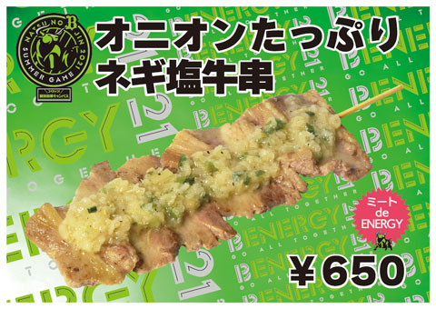 | 商品紹介 | 「オニオンたっぷりネギ塩牛串」 オニオンたっぷりのネギ塩ダレで、さっぱりと食べられる暑い夏にもぴったりな牛串です! |