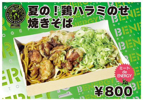 | 商品紹介 | 「夏の!鶏ハラミのせ焼きそば」 味9楽部自慢の焼きそばに、鶏ハラミをトッピングしたおなかも満足できる夏の陣限定の焼きそばです!暑い夏を吹き飛ばそう♪ |