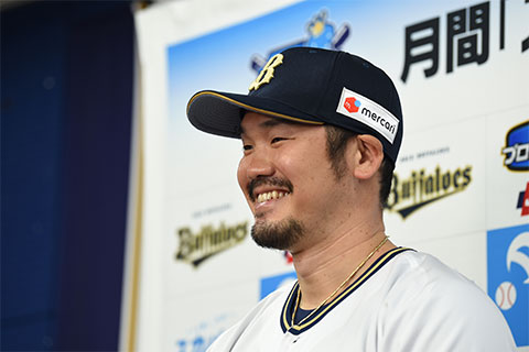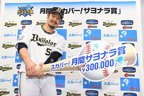 T-岡田選手が、6月度「スカパー!サヨナラ賞」を受賞!京セラドーム大阪で受賞記者会見が行われました。