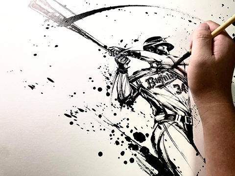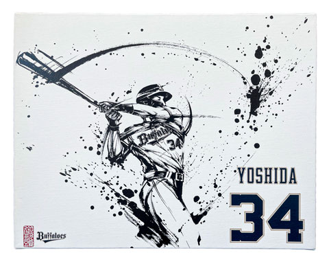 墨絵師『御歌頭』(オカズ)氏とのコラボ商品第2弾として、山岡泰輔投手と吉田正尚選手の墨絵グッズが登場!墨に濃淡をつけない独自のスタイルで描いた白と黒のコントラストの美しさが際立つ迫力のデザインが特徴です。