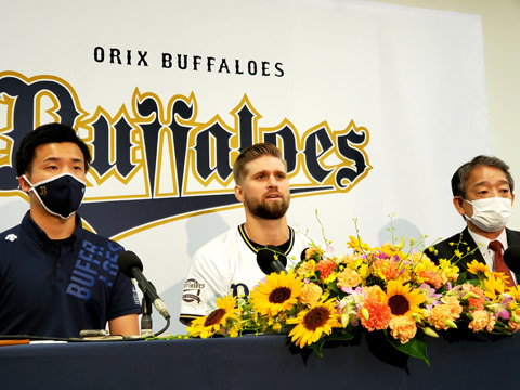 大阪市内にてグレン・スパークマン投手の入団発表記者会見が行われました。