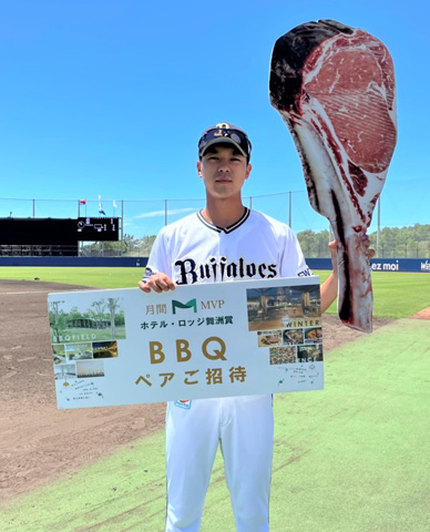 田城選手には、ホテル・ロッジ舞洲 森とリルのBBQフィールドでの、「ご利用券」が贈られます。