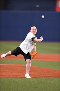 オリックス・バファローズでは8月20日、大阪の街を明るくすることに貢献した地元のヒーローに始球式にご登板いただく「DESCENTE presents 第3回なにわのHERO始球式」を京セラドーム大阪にて実施いたしました。今回の「なにわのHERO」は、今年の春の「紅綬(こうじゅ)褒章(ほうしょう)」を受章された、大阪市天王寺区の浅井信義(のぶよし)さん(47)。紅綬褒章は「自己の危難を顧みず人命の救助に尽力した方」に授与される栄典の一つです。火事の中、高齢親子二人の命を救った勇気ある行動に客席からは盛んに拍手が送られました。