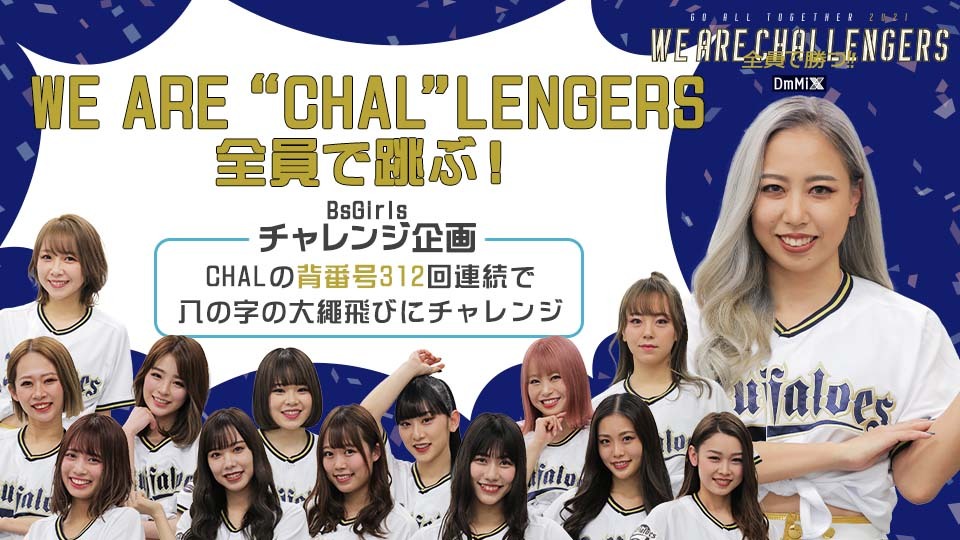 今シーズンで卒業するCHALの背番号312にかけて、BsGirls全員による312回連続で八の字の大繩跳びにチャレンジします!心をひとつにして奮闘するチャレンジの様子は、当日BsGirls公式YouTubeチャンネル「BsGirls Channel」で生配信いたします。チャレンジ成功となるのか?!ぜひリアルタイムでご視聴ください!