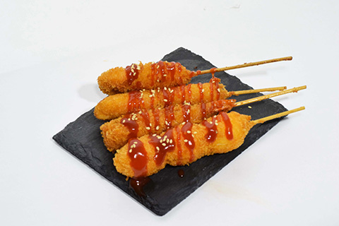 | 商品紹介 | 「勝利の旨辛串カツ」 勝利を祈願した真っ赤な甘辛いソースで食欲をそそる旨辛い串カツ |