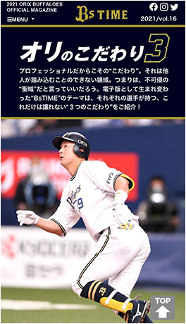 デジタル版「BsTIME」は、シーズン中、毎月2回程度発行予定。活躍中の選手の「オリのこだわり3」を紹介いたします。