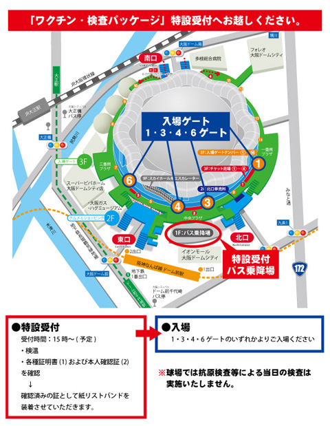 | 受付場所 | 京セラドーム大阪東口1階バス乗降場 |