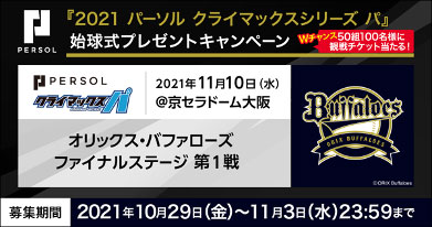 11月10日(水)の 「2021 パーソル クライマックスシリーズ パ」注目のファイナルステージ第1戦は、パ・リーグ公式スポンサーであるパーソルグループの冠協賛試合「パーソルDAY」として開催いたします。