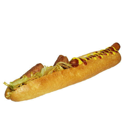 | 商品紹介 | 『大弥のいてまえカチュン(勝利)ドッグ』 ガーリック風味の沖縄焼きそばとポークランチョンミート(スパム)を挟んだ沖縄風いてまえドッグです! |