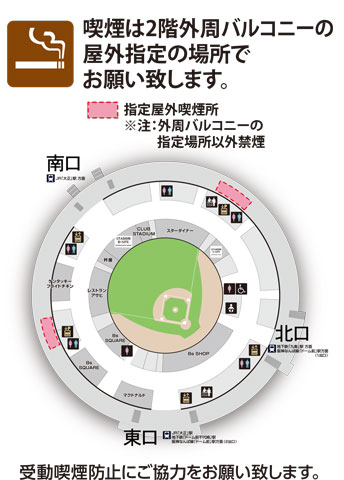 京セラドーム大阪内は、原則として禁煙となっております。 喫煙場所は、下記のみといたします。