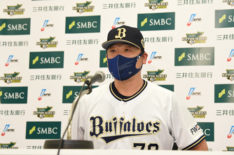 京セラドーム大阪にて中嶋聡監督のSMBC日本シリーズ2021前日記者会見が行われました。