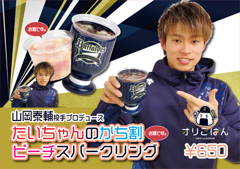 | 商品紹介 | 山岡投手が好きな桃を使用したスパークリングワイン! 白桃のダイス入りで甘くフルーティーな仕上がり♪飲みやすくてリピート間違いなし!! |