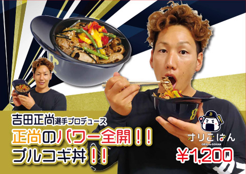 | 商品紹介 | 吉田正尚選手の好きな牛肉を使用したプルコギ丼!! プルコギのタレには、アクセントに痺れるラー油! パンチを効かせたボリューム満点の一品です。 |