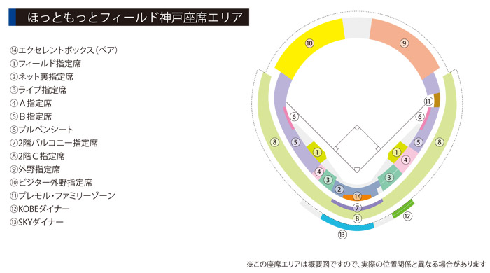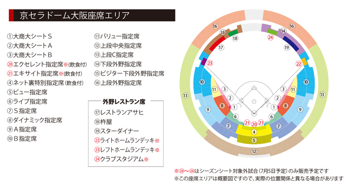 ※京セラドーム大阪のビジター下段外野指定席およびほっともっとフィールド神戸のビジター外野指定席では、ビジター球団以外の球団の応援行為・服装の着用・応援グッズの使用はできません。