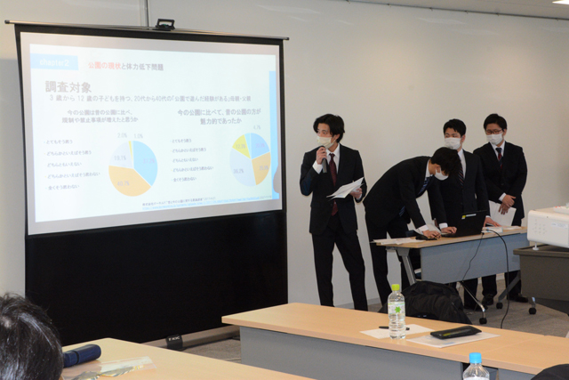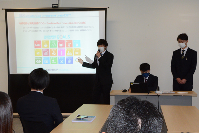 プレゼンする大阪体育大の学生たち