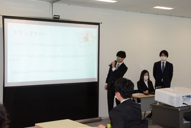 質疑応答の際には、学生からも積極的に手が挙がり「情報発信については、SNSも検討してみては」などと発表内容を深める意見も寄せられました。生粋のバファローズファンという大阪成蹊大学の中村優斗さん(2回生)は「コロナ禍で人前で発表する機会が少なかったため、大変貴重な機会になった」と満足そうでした。ファーム事業グループの岡村義和グループ長は「年々レベルアップしており、今年も聞きごたえがあった。参加学生の成長も感じ、大変有意義な学びの場になったと思う」と総括しました。