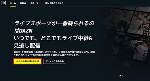 1.DAZNトップページより「1カ月の無料体験を始める」をクリック