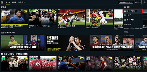 2.画面右上のメニューより「マイ・アカウント」を選択