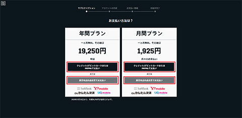 ※Apple ID経由(アプリ内課金)、Amazon IAPアプリ内課金、Google Playアプリ内課金、ソフトバンクからの特別割引プラン、キャリア決済、各ケーブル局経由のお支払い方法にてご契約中のお客様で年間視聴パスをご利用希望の場合は、退会手続きをお取りいただき、現在のご視聴期間満了後ご利用停止となったことを確認いただいてから、年間視聴パスにて必ずWebブラウザよりご利用再開手続きをお試しください。