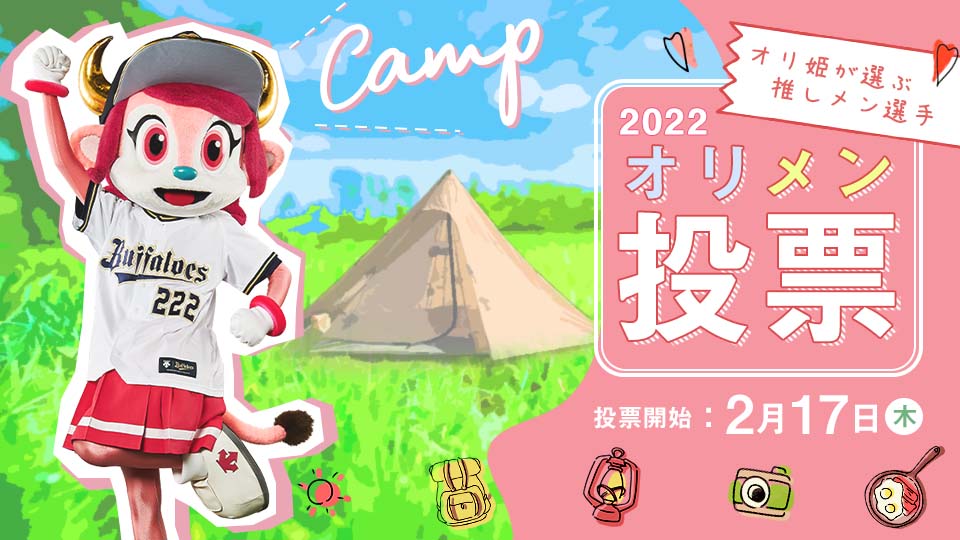 今年のオリ姫デーのテーマは「キャンプ・アウトドア」!大自然の中、一緒にキャンプ飯を作ったり、焼きマシュマロ入りココアを飲んだり・・・。いつもとは違うシチュエーションや姿にキュン♡としたい“一緒にキャンプ・アウトドアに行きたい選手”を選出いたします!