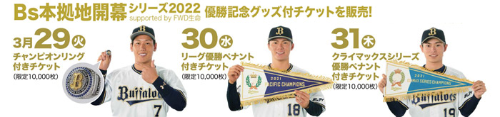 オリックス・バファローズでは、3月29日(火)~4月3日(日)の本拠地開幕6連戦を、「Bs本拠地開幕シリーズ2022 supported by FWD生命」として開催いたします!