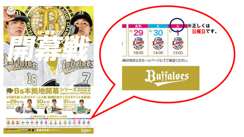 「本拠地開幕ポスター」につきまして、一部に曜日の誤りがございましたお詫びの上、訂正いたします。