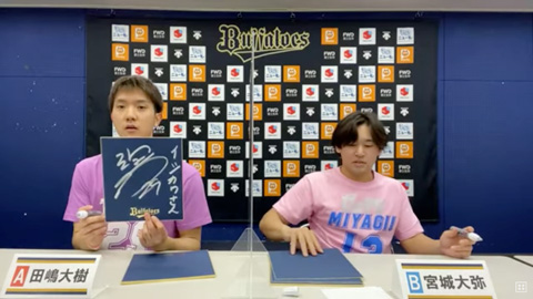 バファローズ選手がお客様の宛名を入れたサインをその場で書くオンラインサイン会です。サイン会の様子はオリックス・バファローズ公式YouTube「BsTV」にて配信を行います。参加選手は当日までお楽しみ♪コメント機能を使えば、リアルタイムで選手とコミュニケーションが取れるかも!この機会に応募して、宛名の入ったサインをGETしよう!