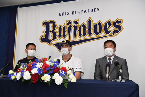 「オリックスに入ることができてとても光栄に思っていますし、今日チームメイトにも会えて、これからを非常に楽しみに思っています。(自身のストロングポイントは)一番はコントロールに自信がありますが、その中でもまっすぐで勝負できるというところです。できるだけ早い時期に試合で投げれるように調整していきたいですね。オリックスは間違いなくいいチームですし、若いチームです。このチームで日本シリーズまで行けるようにがんばりたいと思います。