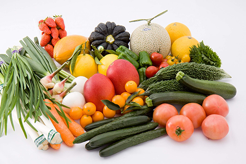 施設作物はキュウリ、ピーマン、トマト、アールスメロンなどが主流。特にキュウリは県内一、全国でも有数の生産量を誇ります。生産者が収穫しながら直接箱詰めしていくワンタッチ方式や、共同選果でも表皮が傷つかないように空気圧でキュウリを箱詰めする機械を導入するなど、新鮮さを保ったまま出荷する工夫をしています。