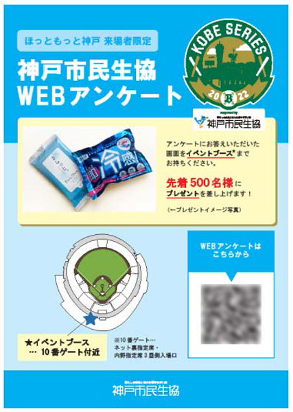5月17日(火)、18日(水)の北海道日本ハムファイターズ戦では、神戸市民生協によるプレゼント付WEBアンケートをイベントブースで実施いたします。