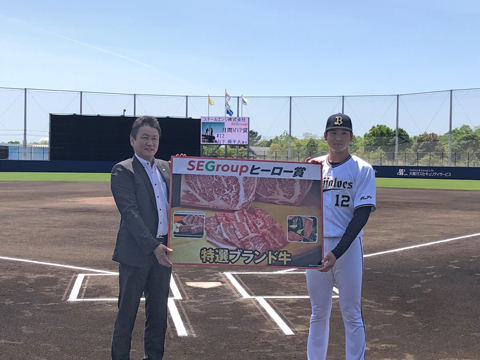 山下投手には、スチールエンジ株式会社より特選ブランド牛3kgが贈られます。