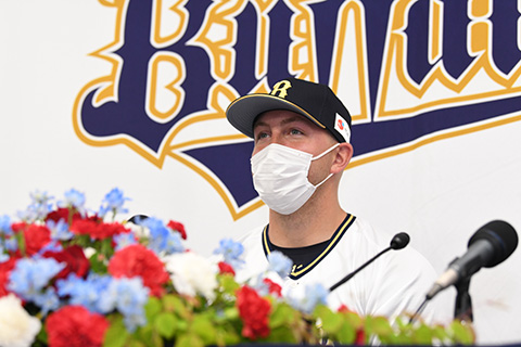 京セラドーム大阪にてジョー・マッカーシー選手が入団発表記者会見を行いました。
