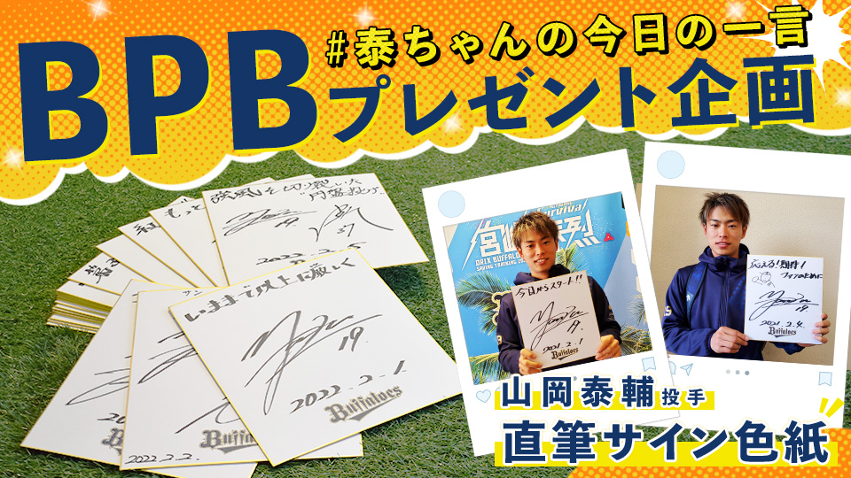 BPB(バファローズプレミアムボックス)では、山岡泰輔投手のサイン色紙が当たるプレゼント企画を4ヶ月連続で実施いたします!