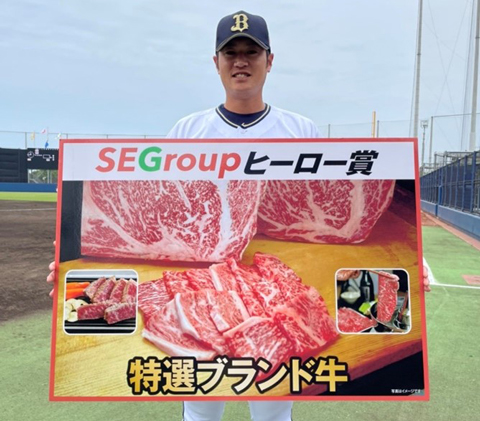 山田投手には、スチールエンジ株式会社より特選ブランド牛3kgが贈られます。