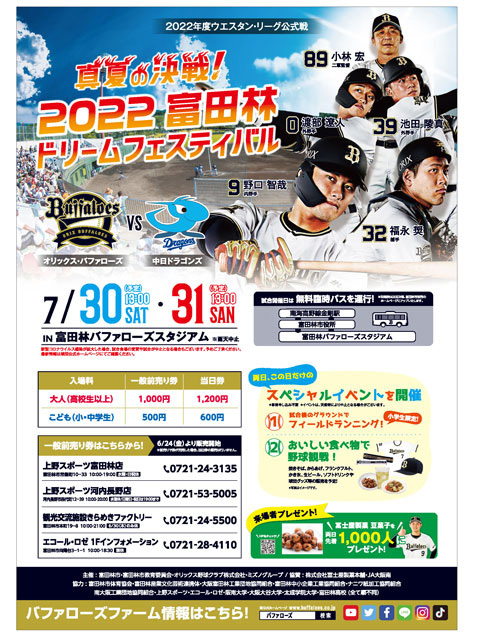 | 主 催 | オリックス野球クラブ株式会社・富田林市・富田林市教育委員会・ミズノグループ |