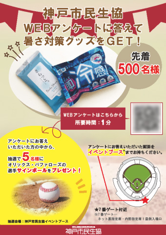 6月28日(火)、29日(水)の東北楽天ゴールデンイーグルス戦では、神戸市民生協イベントブースにて、プレゼント付WEBアンケートを実施いたします。