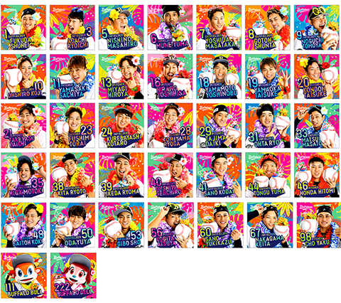 | 受注対象 | 福田・安達・西野・宗・吉田正・後藤・野口・大城・山崎福・宮城・平野佳・山本・山岡・近藤・竹安・伏見・紅林・富山・田嶋・太田・松井・比嘉・来田・池田・大下・佐野皓・頓宮・本田・齋藤・小田・宜保・小木田・佐野如・中川圭・張・バファローブル・バファローベル・BsGirls |