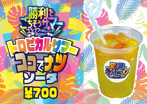 夏のイメージポスター「#勝利をごちそうサマー #ココでナツを味わいつくせ」をイメージした期間限定のココでナツメニューを販売いたします。また、以前販売した選手メニュー「ミルクT-岡田」の復刻商品も登場!この機会にぜひお立ち寄りください。