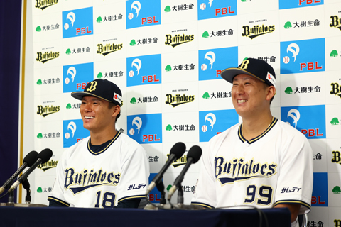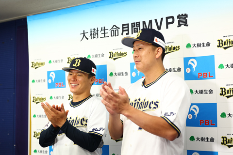 6月度パシフィック・リーグ大樹生命月間MVP賞に山本由伸投手、杉本裕太郎選手が選ばれ、受賞記者会見を行いました。