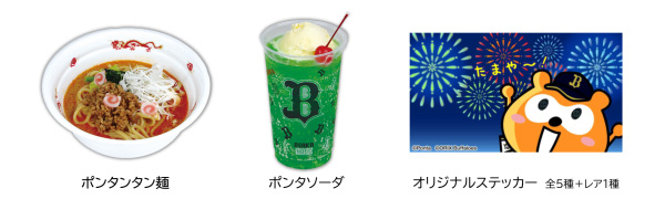 各メニューをご購入いただくと「バファローズ☆ポンタオリジナルステッカー」を1枚お渡しします♪